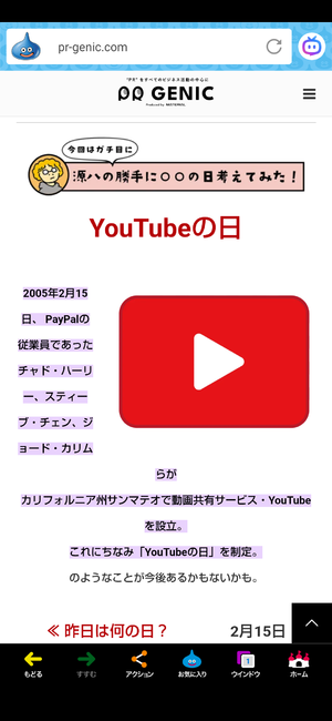 「動画共有サイトYouTubeが設立した日」。🎌