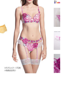 ブラジャー(3/4カップ C85)・パンティ(Tバックショーツ L)・ガーターベルトの3点セットを、送料込み7500円でお譲りいたします。中古ではなかなか出ないシリーズと思いまうs。