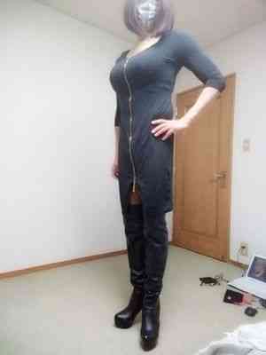 ミニワンピにテカテカストッキング、ブーツ👢です。6枚貼らしてくださいね。
