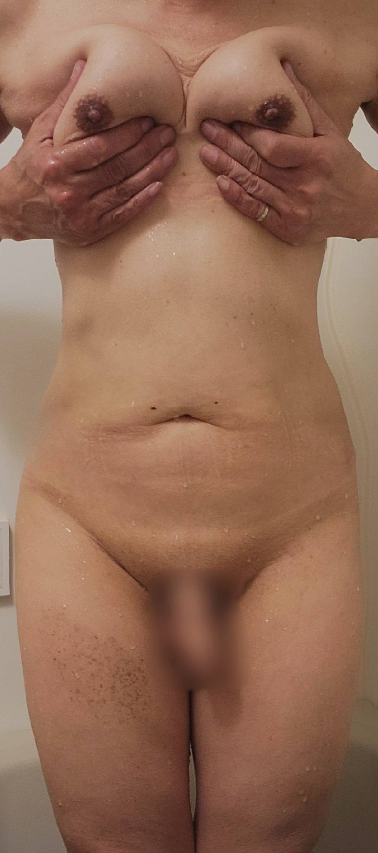 カップレスブラしないと、やっぱり胸はこんな小さめちっぱいになりますね。お風呂でエッチも大好きです。過去画ですみません🩷