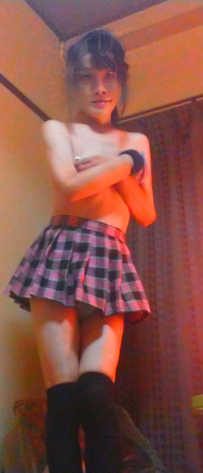 服剥ぎ取られ、ショーツもスカートも。ソックスだけ残し裸に。