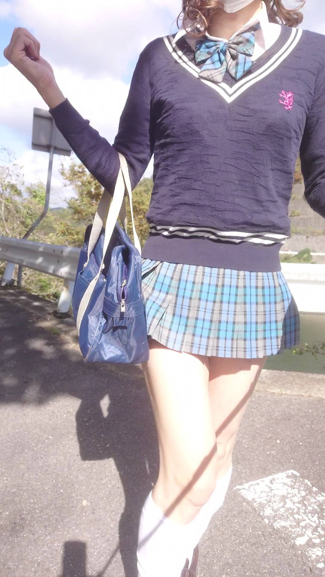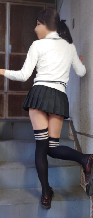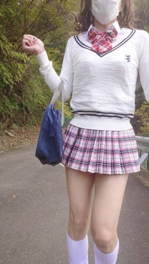 新栄高校のミニスカートでお散歩したよ。