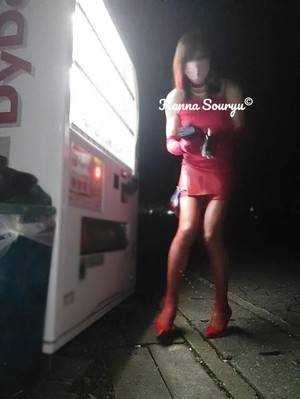 黄色い横空きのレザースカートで徘徊、アナニードライブです。