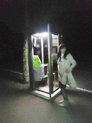 深夜の露出散歩の先には、違う場所の電話ボックス🤤