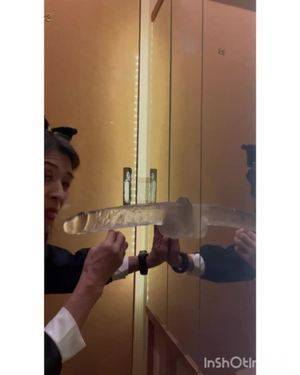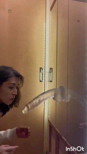 ❤️鏡に付けた長さ23cmの巨大ディルドを