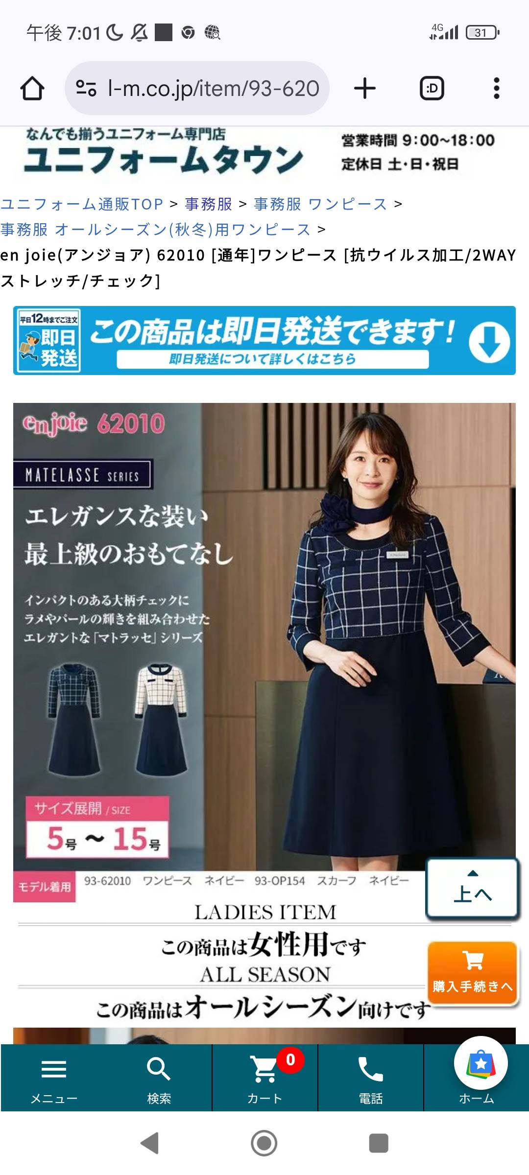 正直申し上げますが事務服は300着位持ってます!ですが、まだ欲しい事務服というかインフォメーション系の制服が欲しいです。しかし27000円は高過ぎますね。因みにアンジョアです。アンジョアは可愛らしい制服が多いですね。ユニホームタウンと検索して、ブランドをアンジョア、ワンピースと続けて検索してみて下さい。