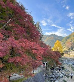 多惠子さん、こんばんは😊今日は天気も良かったので愛知県豊田市の香嵐渓まで紅葉狩りに来ました。ちょっと早かったです。露店も結構出てて猿回しもやってました。