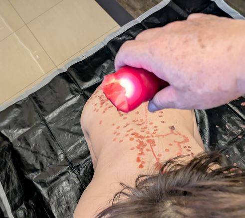 さらに奉仕させながら背中にも蠟燭をタップリと~