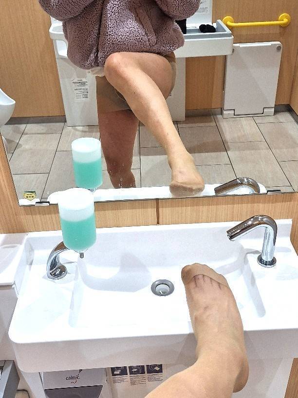 美熟女ナースさんに遭遇、ナースサンダルの先からパンストのつま先補強部分と