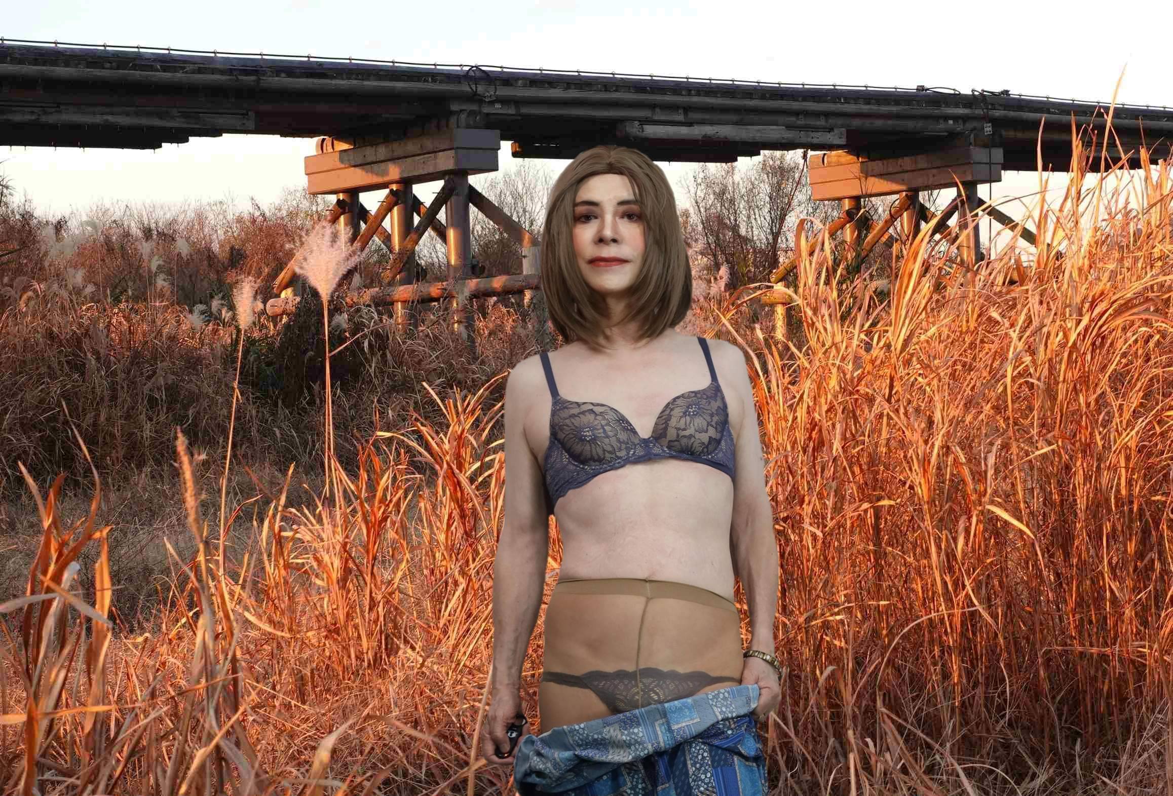茜も橋の下の枯れすすきを背景にしてみました。