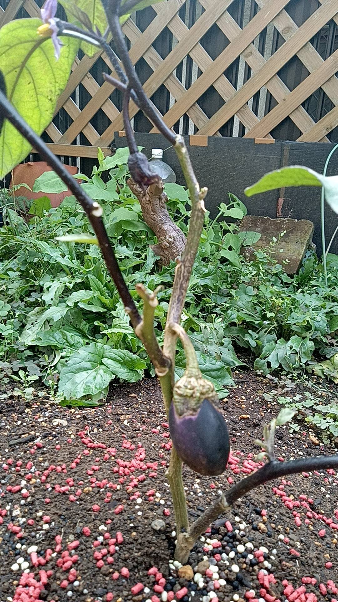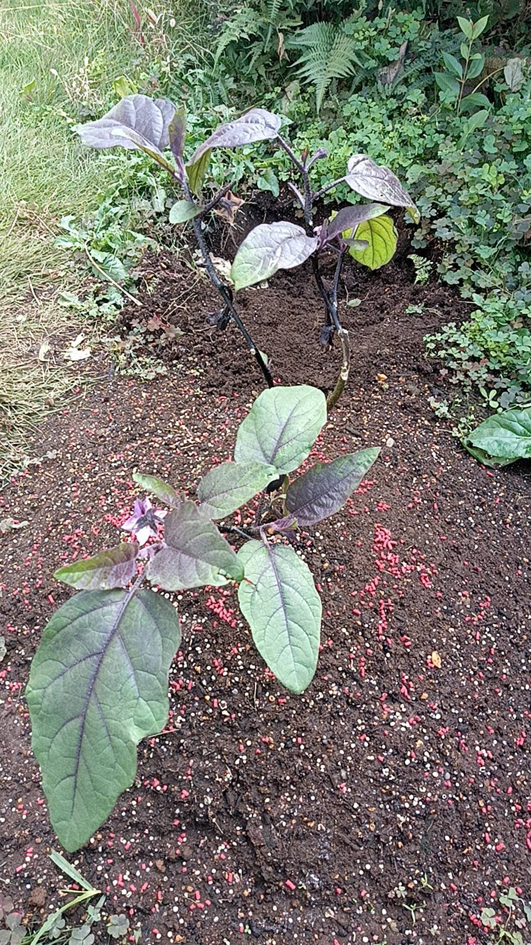 不定期でお送りしています 琴美のパンスト菜園通信 vol.28 です🤗🌞 さて、苗を植えてから約4ヶ月程経ちました秋ナス🍆です。葉も広がり、お花も4つほど咲いて実になりかけているのもあります😊 でも、1番大きな実の大きさが変わらないのが心配です😟ナンデカナ~? 定期的に101を撒いたり、追肥はしているんですが、、、寒くなっていますし。まあ、様子見ていきま〜す!! 🙂