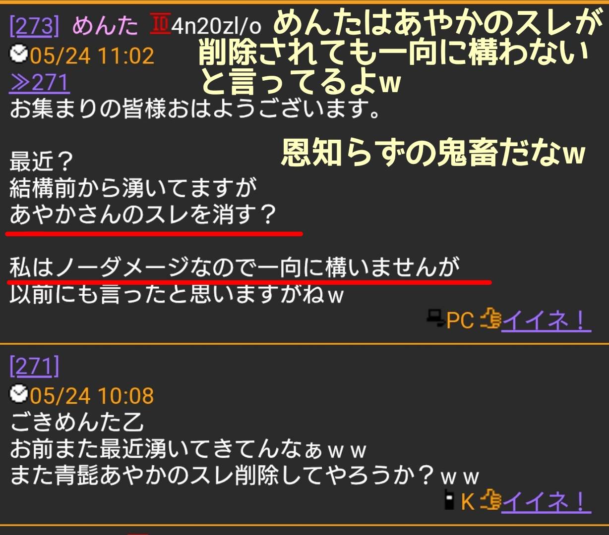 因みに、めんたはあやかのスレが削除になっても全然構わないとコメントしてたからな