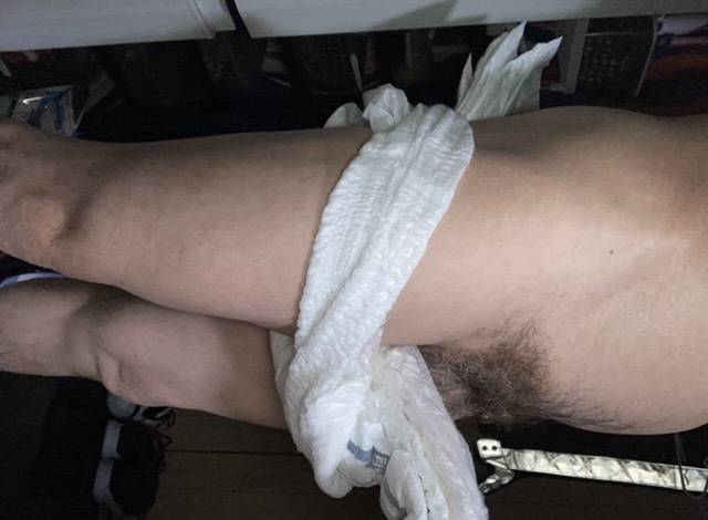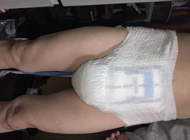 おむつ穿いてます見てほしい!臭いおむつ穿いてます!おむつの中のパッド交換してません!もう10日間!黄ばんでます!