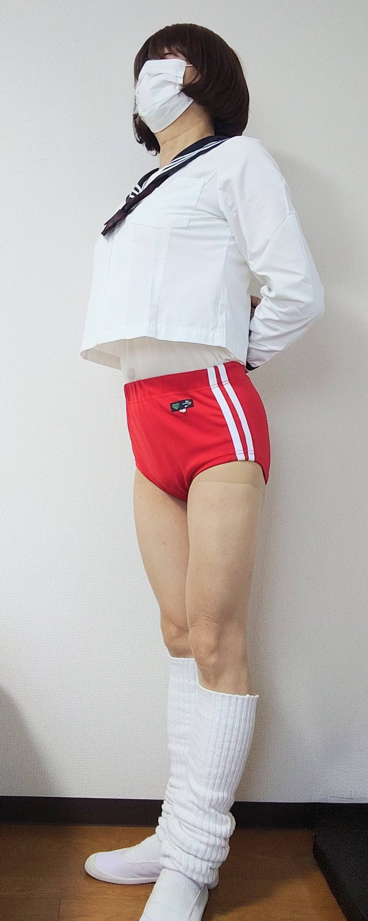 スカートの中は赤いブルマです。