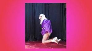 スケベな衣装で舞台上で尿道をパックリ!