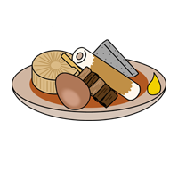 他には、蒟蒻、餅巾着、竹輪、はんぺん、薩摩揚げ