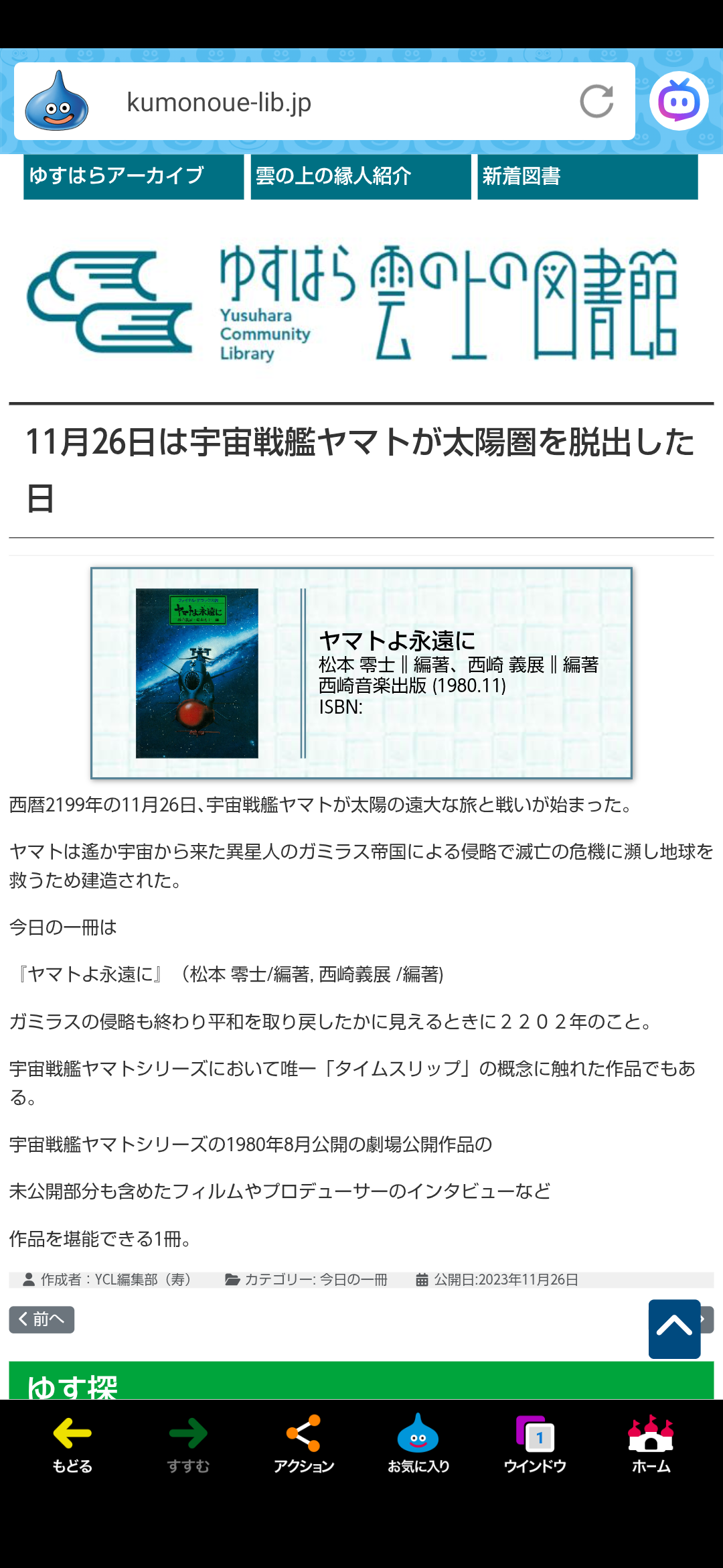 「宇宙戦艦ヤマトが太陽圏を脱出する日」、「対ゴジラ作戦『ヤシオリ作戦』が実行される日」。🎌