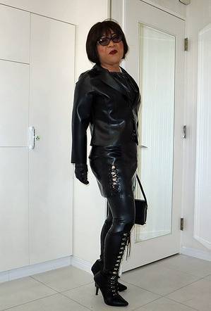 ゴムとレザーに包まれて変態娼婦ね!