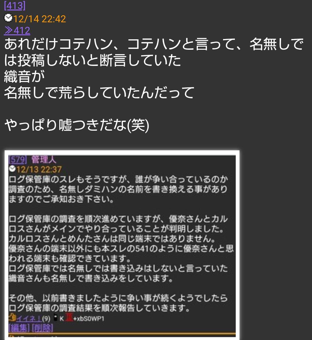 めんた=スレ一覧画像埋込みの件やカルロスの件、他スレにて加工乙のスクショ等は優奈節で言うとグレーって事ですね(爆)