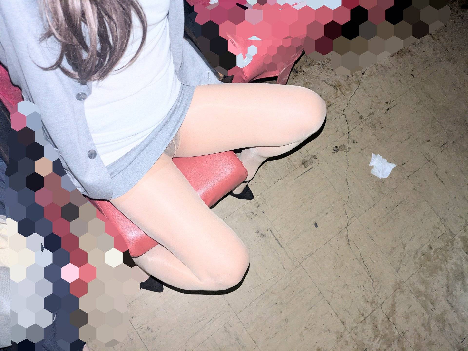 一斉に暗闇から多数の男性がギロリと私達に集中🩷女子高生風女装さんは分かりやすい深呼吸何度も🩷ティッシュになんかしら分からない体液が包まれた状態で床に放置されてるのを見てまたもや女子高生風女装さん深い深呼吸💕