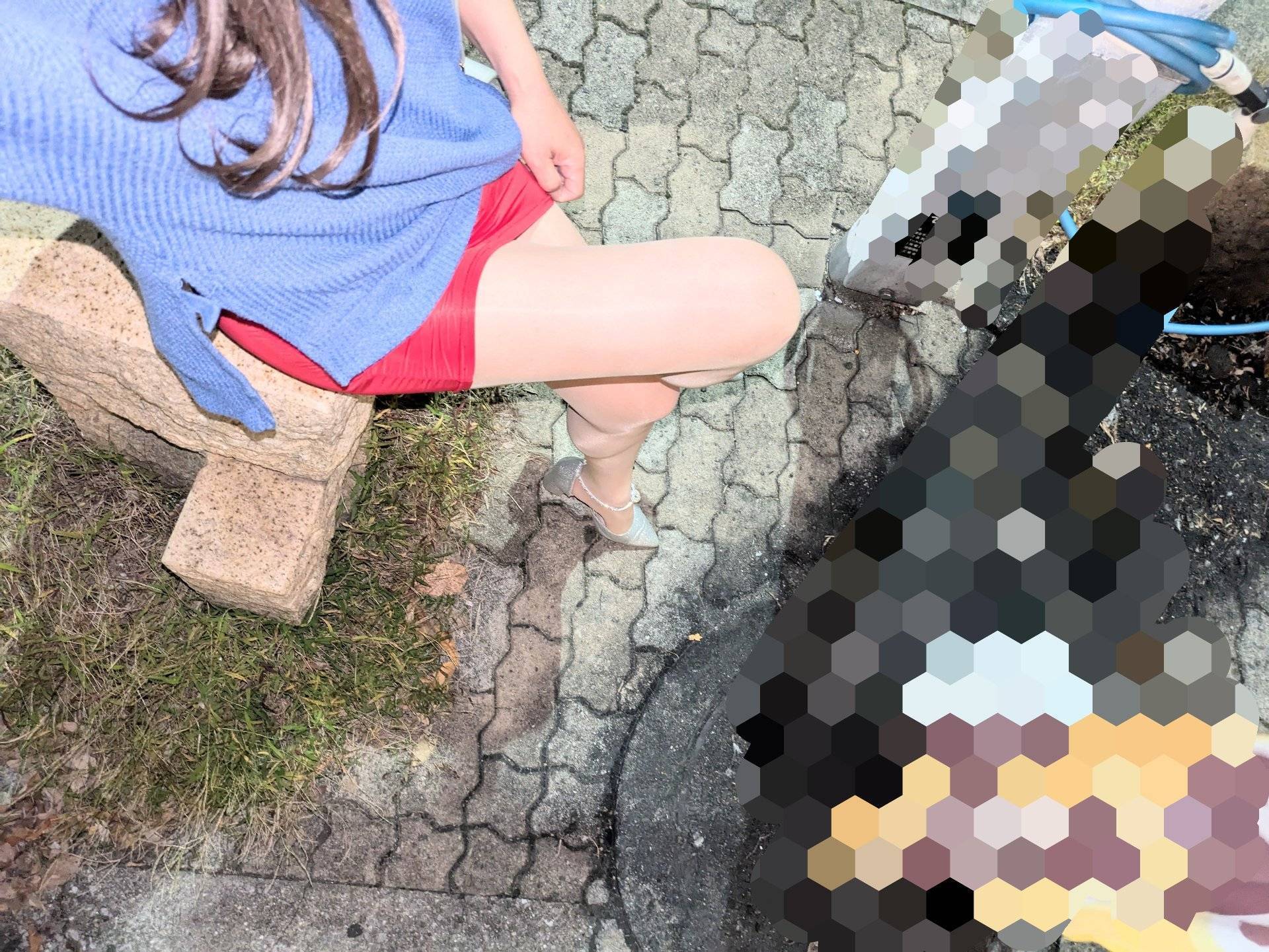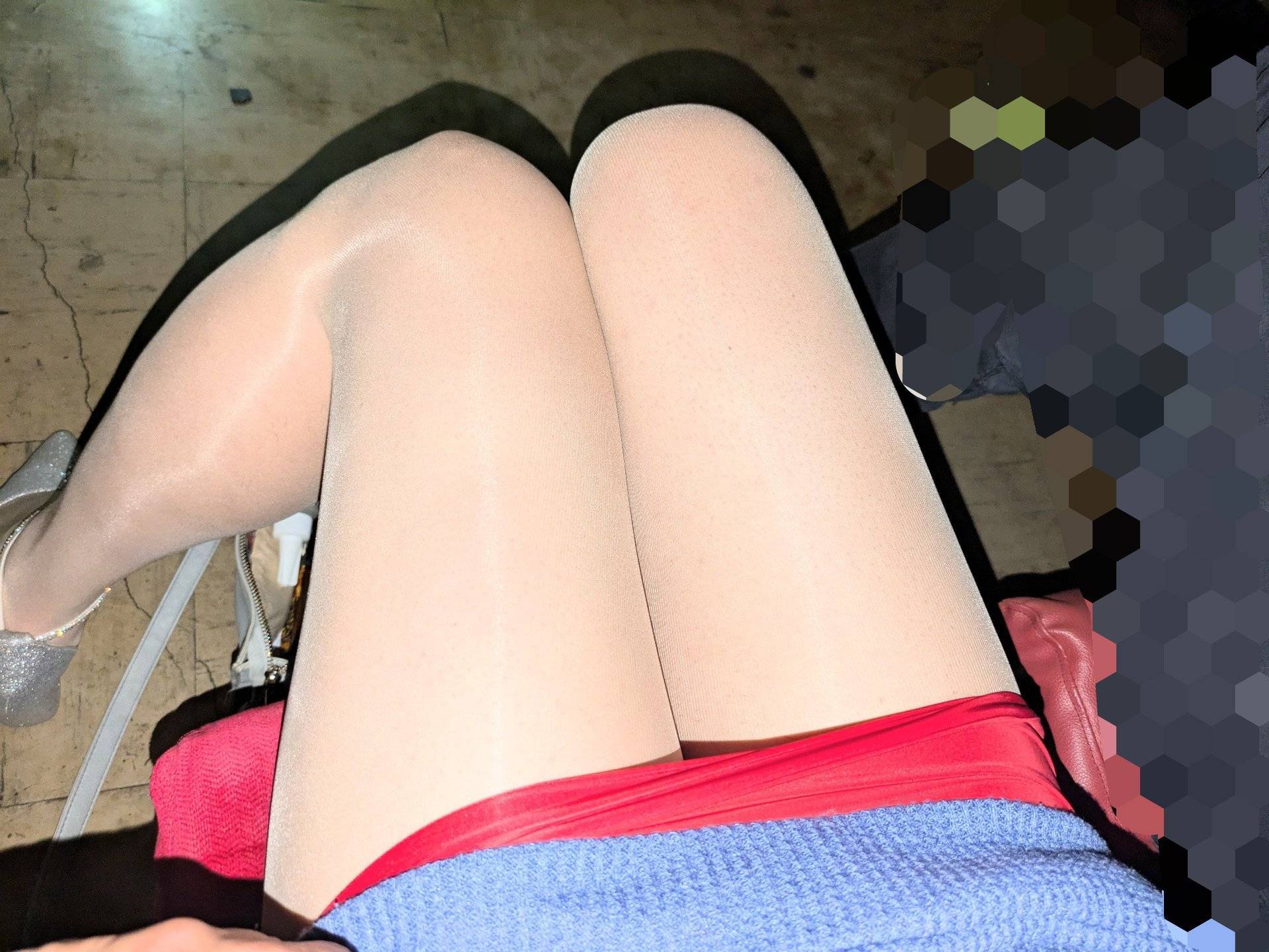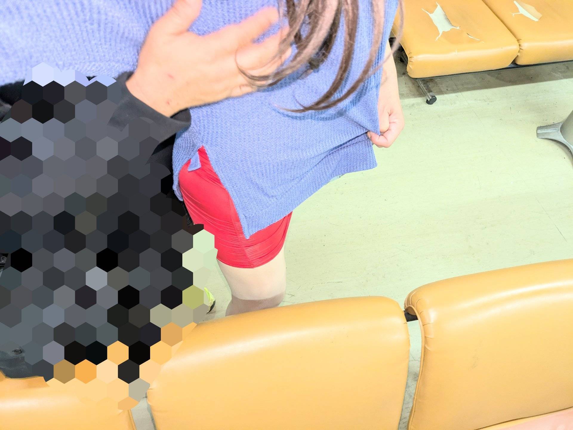 露出じゃないけど脚を組み替えたら角度により見えちゃうかもです。ジャ-ジの男性が少し近距離になりジャ-ジ上から明らかに膨らんでるような🩷ポケットに手を入れポケット腰に自らの膨らみ部分をゴソゴソ🩷鼻息が聞こえる距離まで来てしかも無言でガン見🩷
