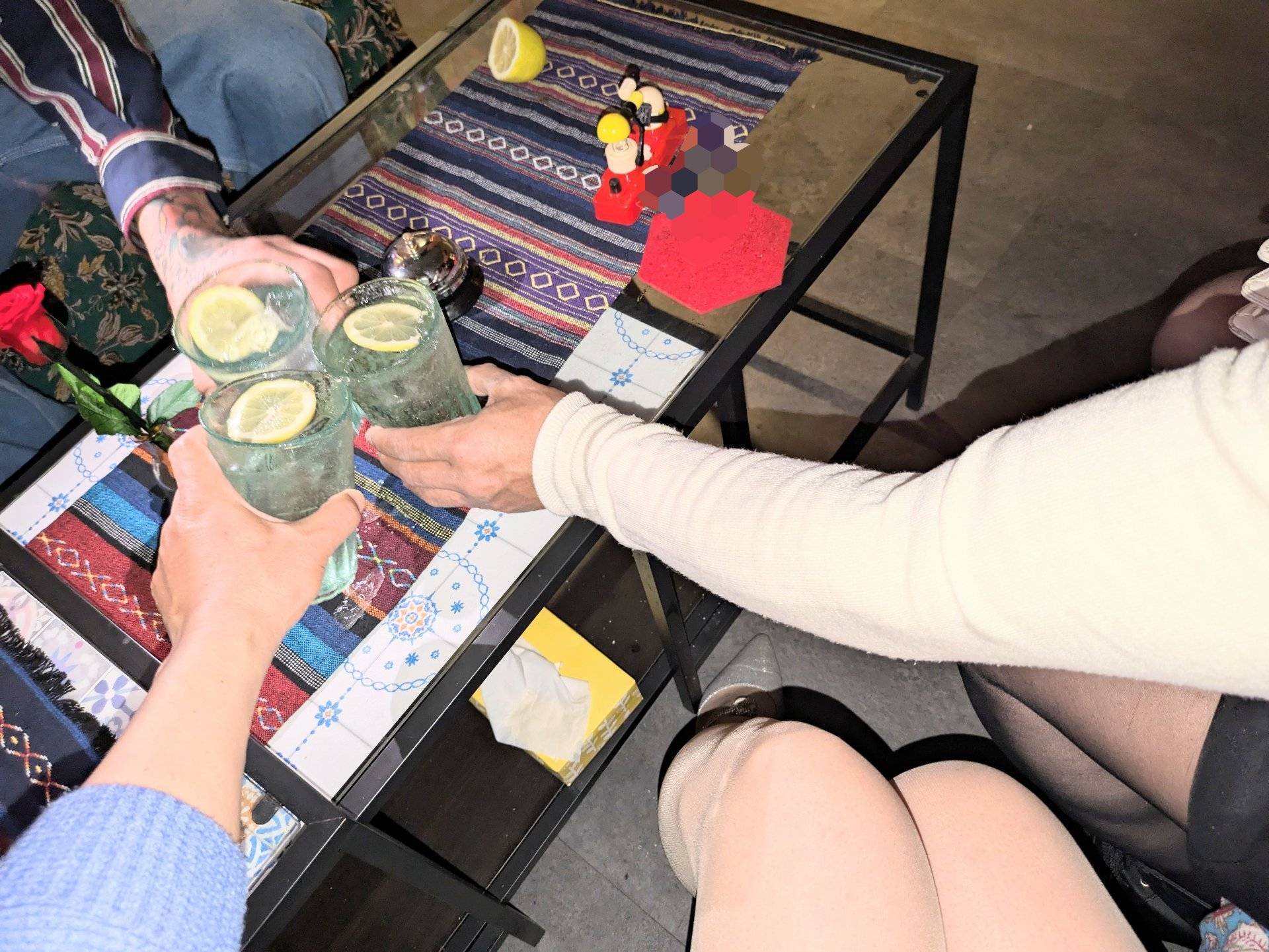 男性より「少しお話しませんか?座って。」と🩷2人ほど少し離れてこちらを眺めてる方々が(゚∀゚)