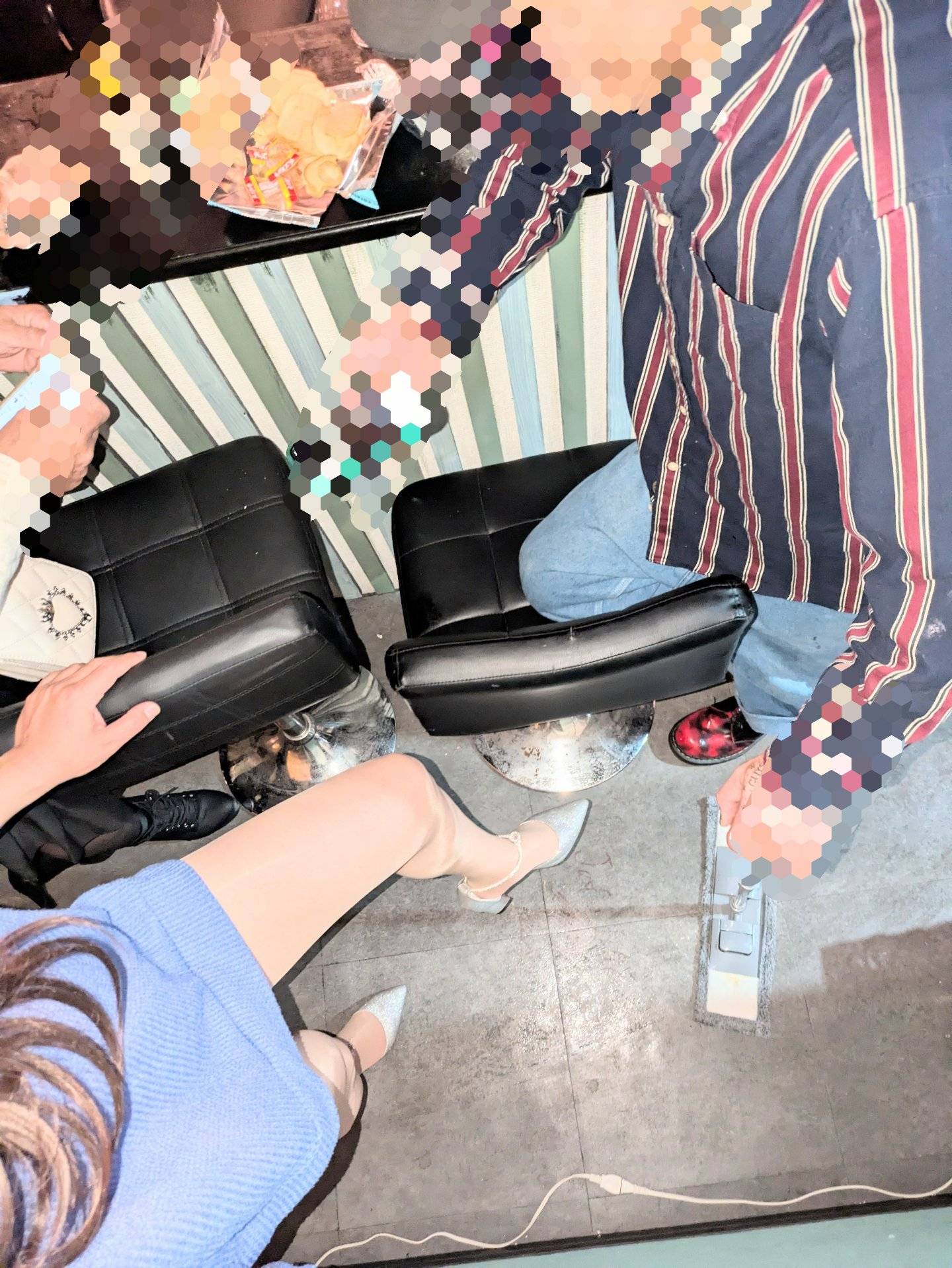 私は触りまくられてる紳士様方々に一度中断願いそこまで見に行きました。四名紳士様方々に囲われムチャクチャにされてる女装さん😢でも女装さんは目が合うとニコッて笑いVサイン✌️。お写真は居る皆様に了解取りパシャリ📷️また自分の席に戻ろうとしたら捕獲され「こんなスカ-ト履いて💢可愛がって欲しいんか」ってスカ-トペロリと御愛嬌🩷「ティーバックやな…全文