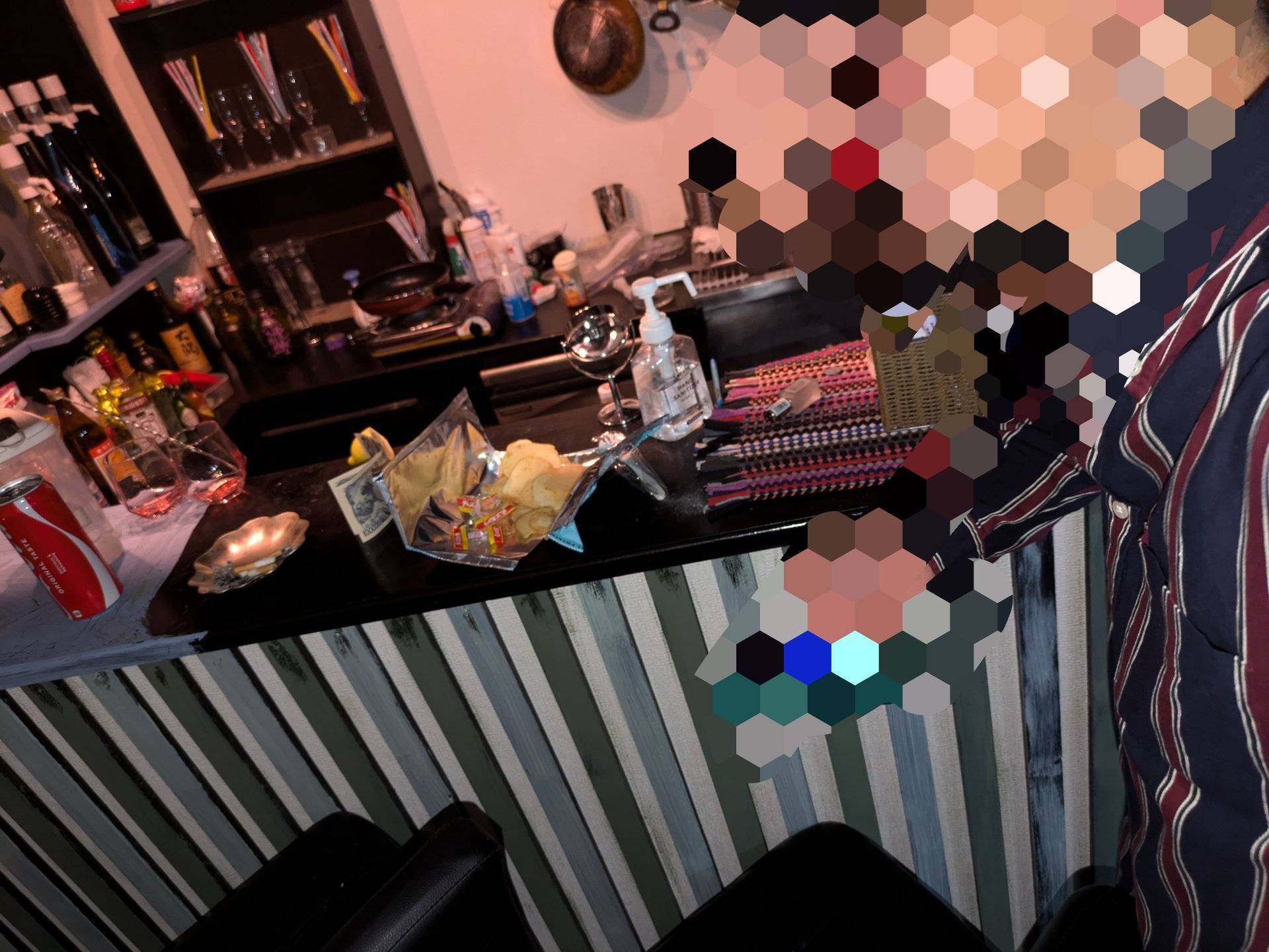 館内で囲みスキンシップされていた女装さんと遭遇🩷いっぱい色んなことされた話、またまたあの店でお酒飲みながらお話🩷お互い今日の報告しあい変態度を競いました💕
