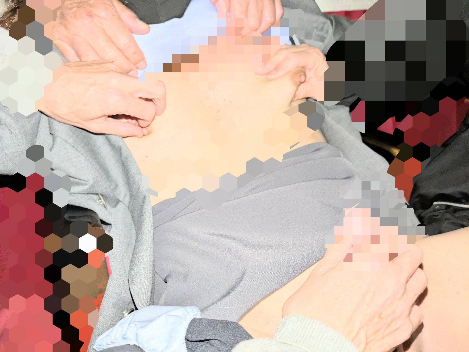 後部の座席にはゴムの封を切り準備する男性3名ほどとスキンシップしてくる方々と指マンする方1名。斜め後方には眺めながら股間付近小刻みに手を動かす方々2名ほど🍌