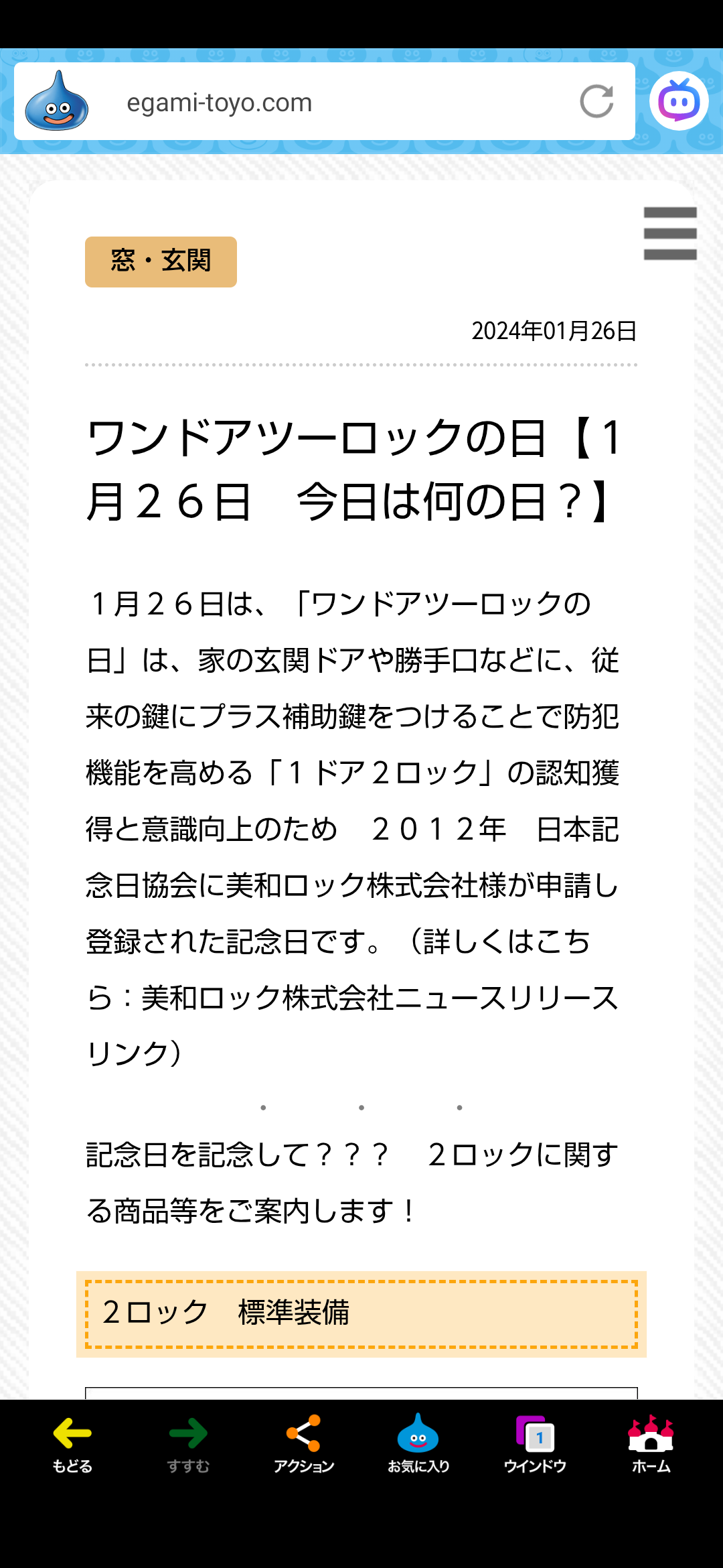 「1ドア2ロックの日」。🎌