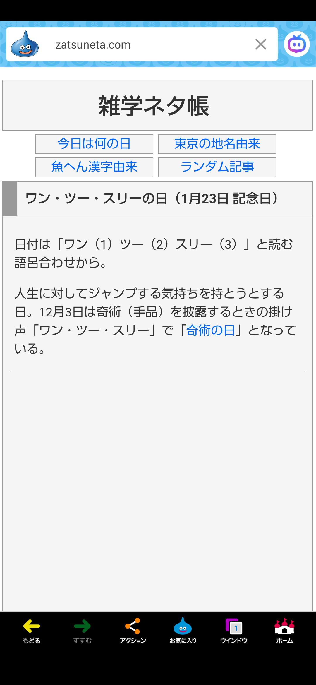 「八甲田山の日」、「ワン・ツー・スリーの日」。🎌
