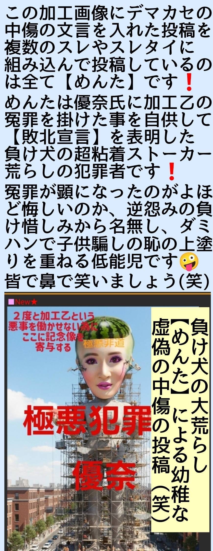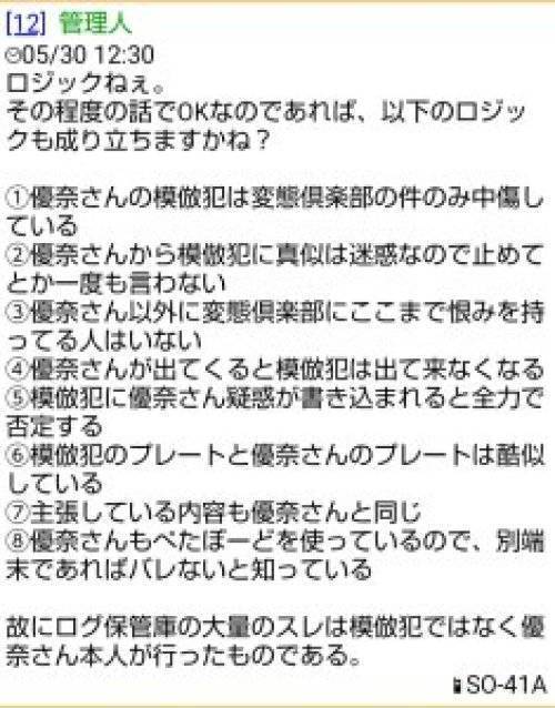 あの人にはノーダメージだと思うが犯罪者優奈には是非ともスレ頑張って欲しいねw