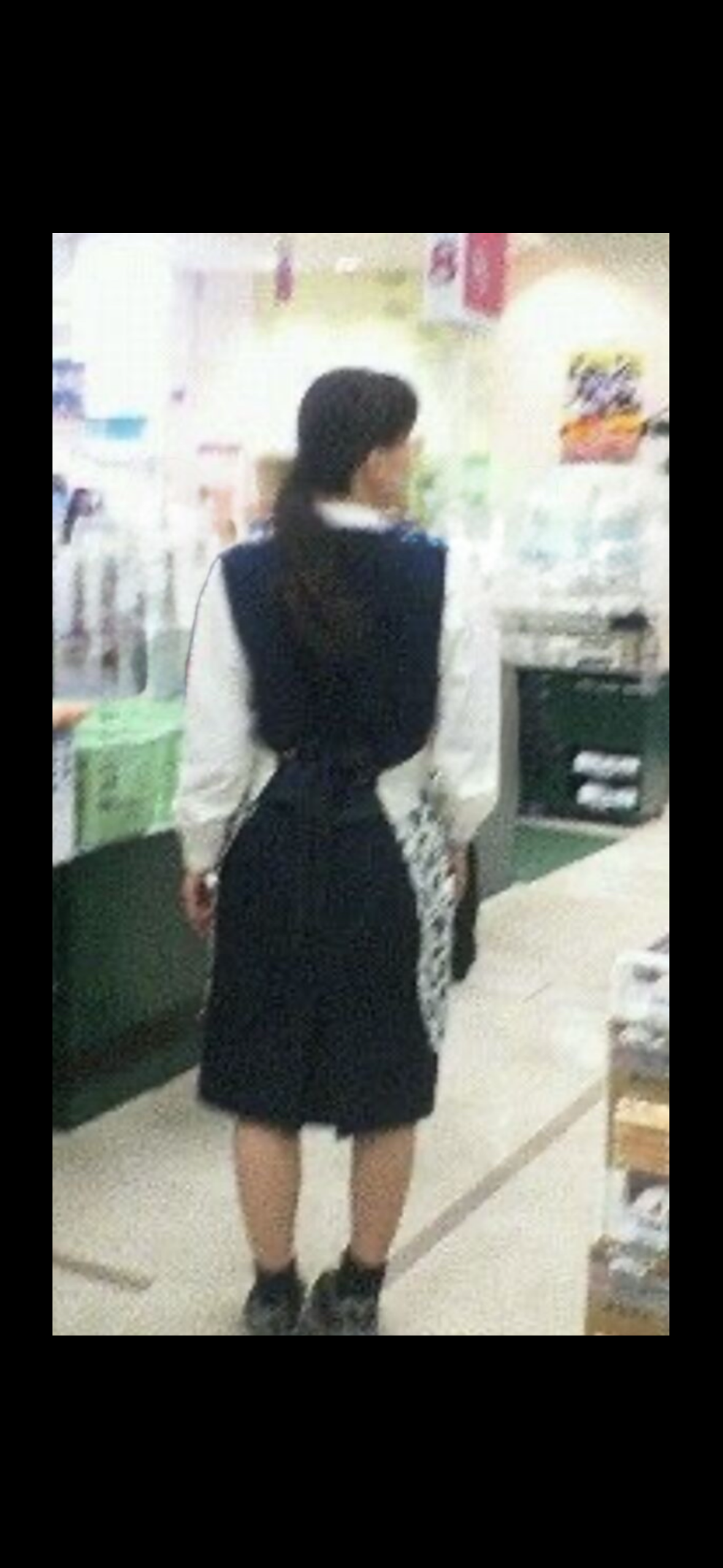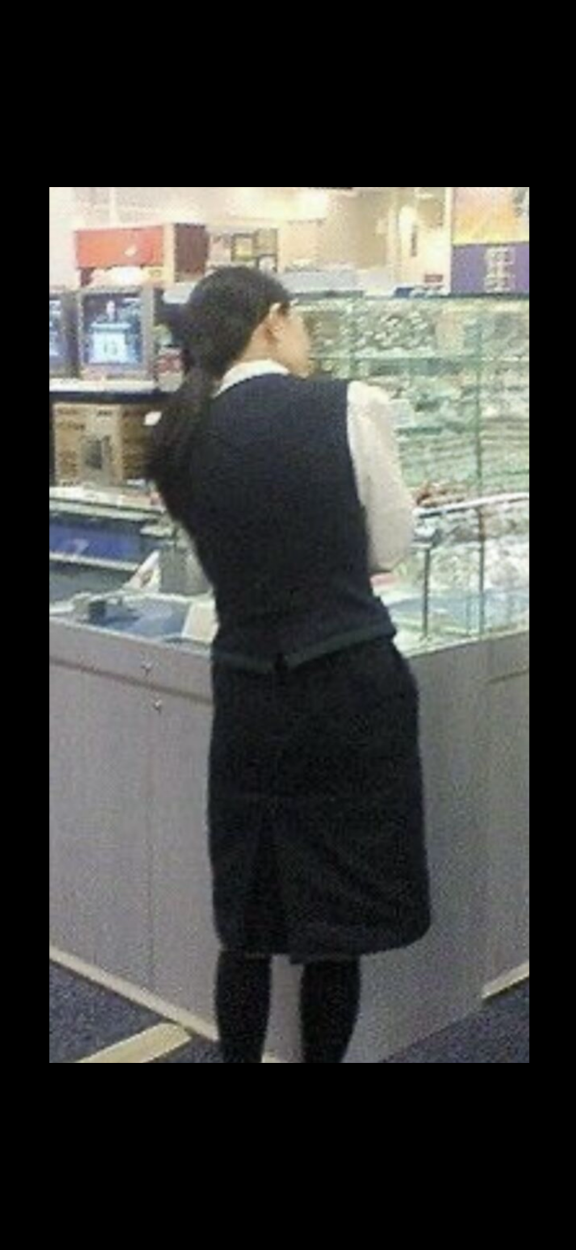 この人妻のケツは黒色のスカートに張り付いている見たいな感じでケツがぷりんとして張り付いていますね?生脚の人妻店員も良いですが、黒色のパンストを履いている人妻も良いですね?