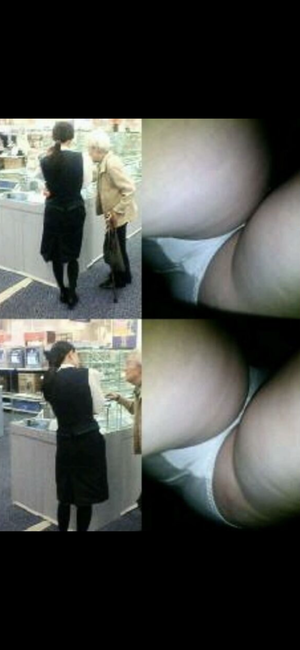 今度は60代前半の熟熟女店員です。やっぱり、人妻と熟女が履いているパンツの色は白色のパンティを履いていますね?やっぱり男性が好んで女性に履いて欲しい色の白色パンツの色を知ってて履いているのかな?