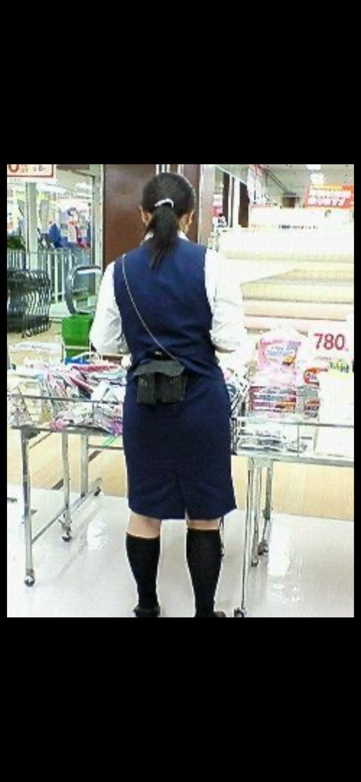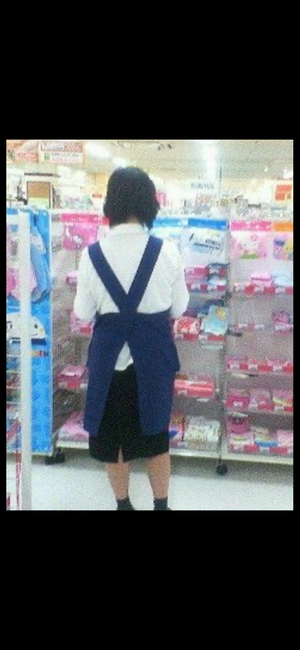 また某超有名なスーパーの制服人妻店員です。この奥さんは50代位の人妻でスカートのサイズも少し小さめは履いている見たいでケツが いつもパンパンに張り付いている感じです。