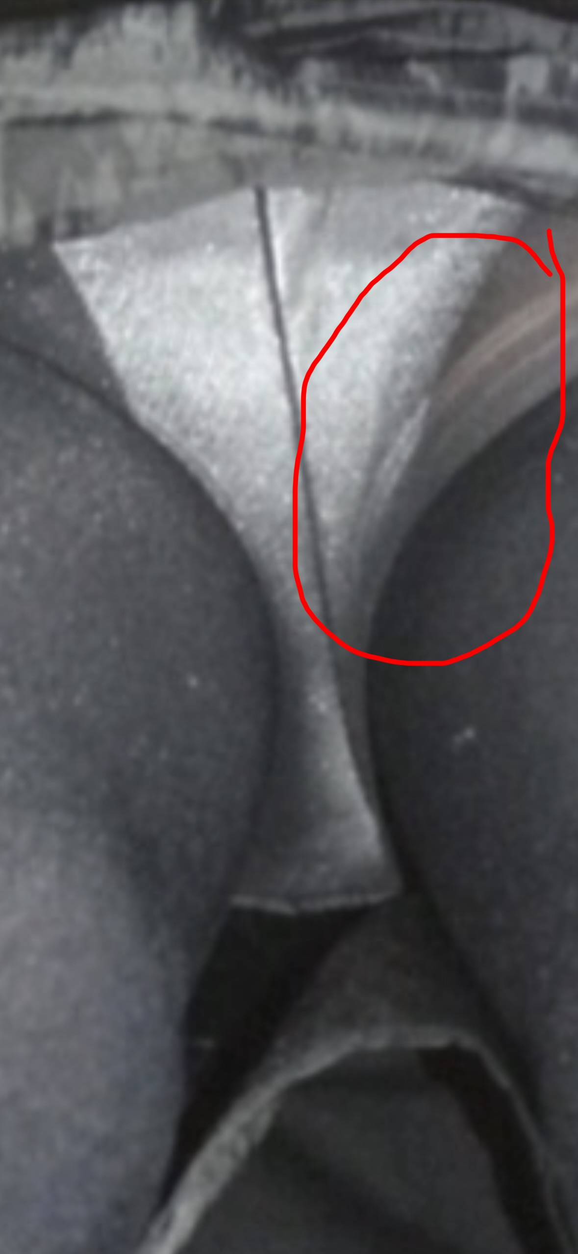 先に書き込んで画像を貼った50代後半の他人の熟熟女の写真の続きです。余りよく分からないのですが赤い⭕️で囲んだ所(太もも)の黒色のパンストが少し伝線をしていますね?何故だろう????少しでも伝線をしたら少しでも履き替えるのに何故だろう?