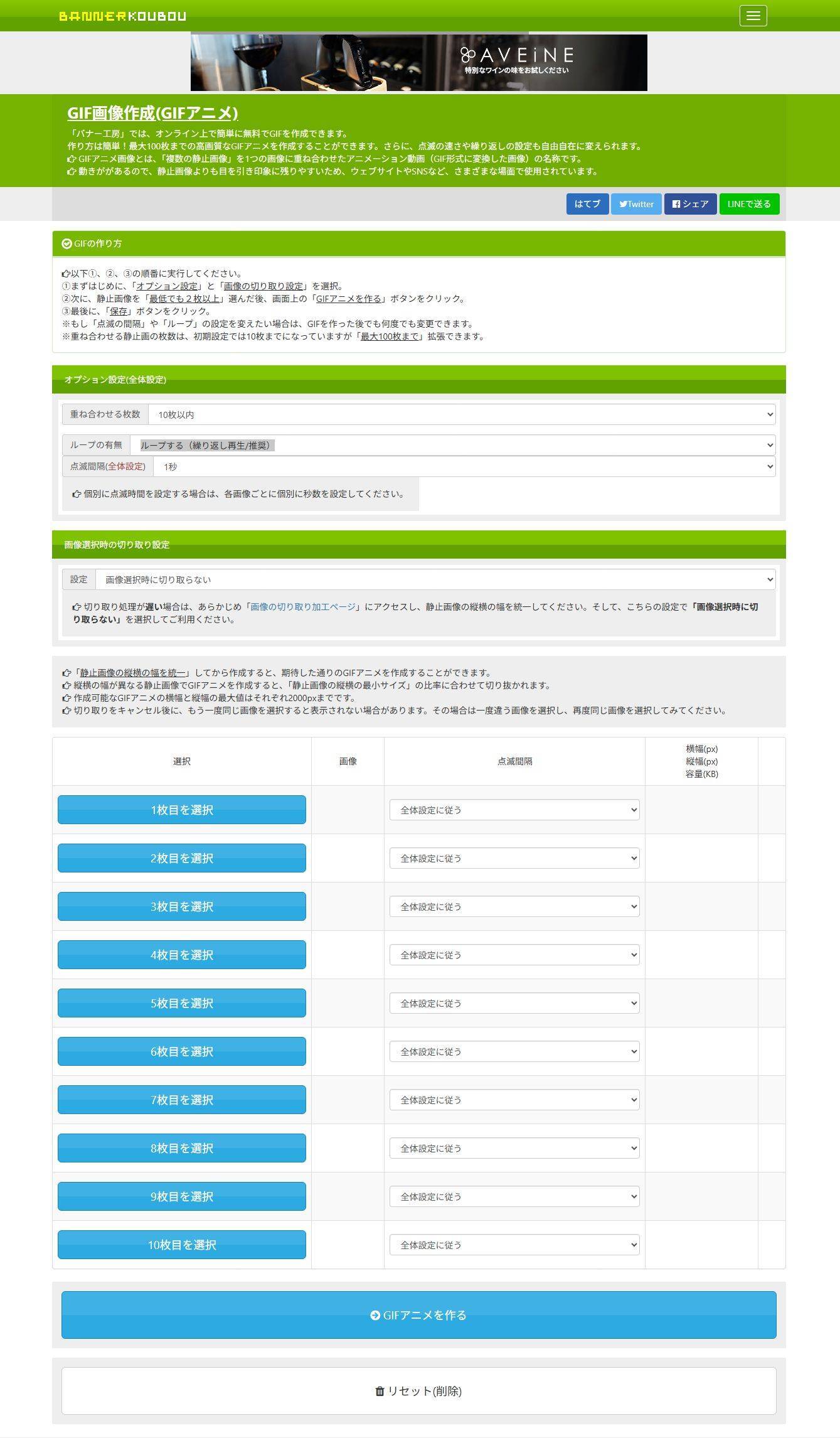 バナー工房というサイトのGIF作成機能をつかってGIF画像にしてみます